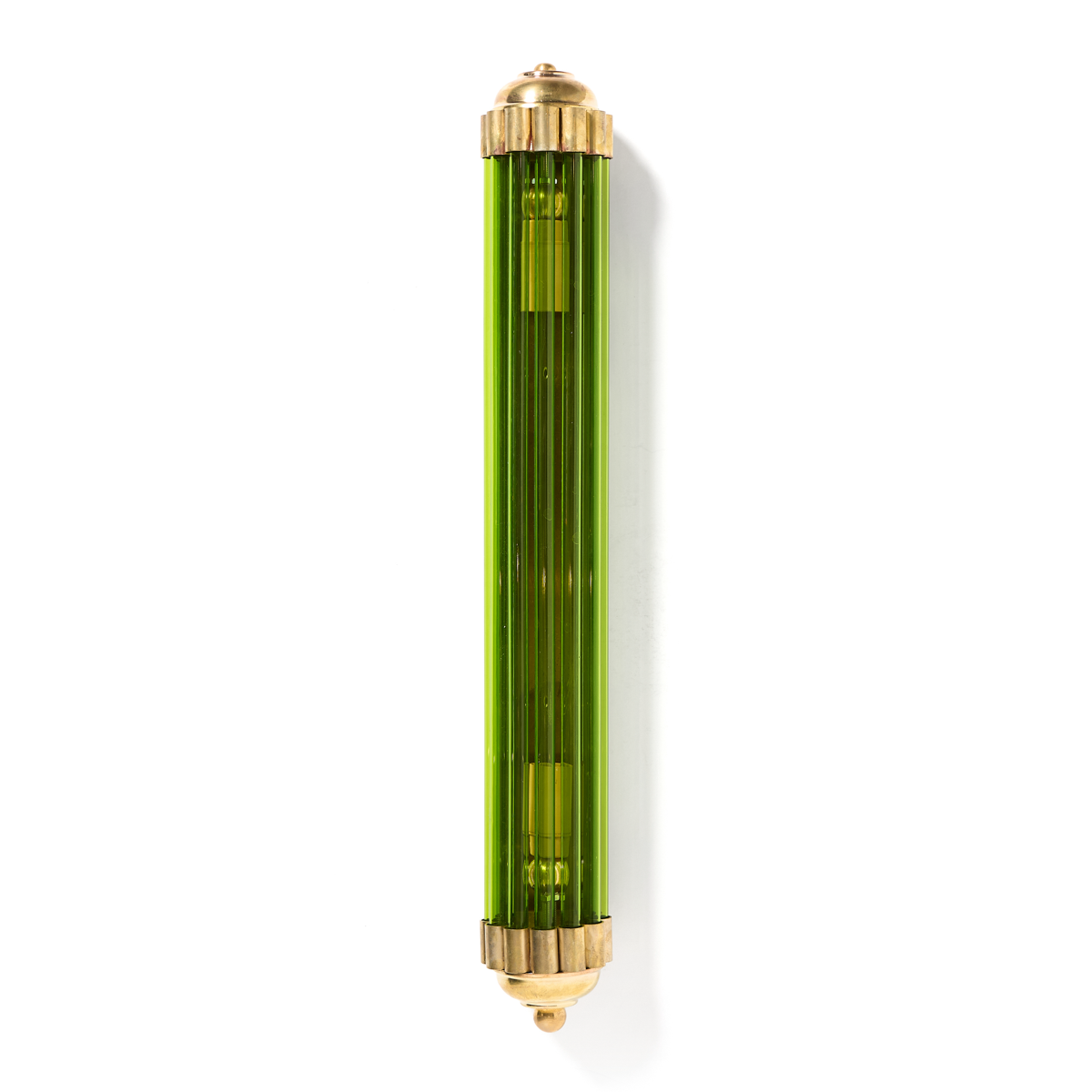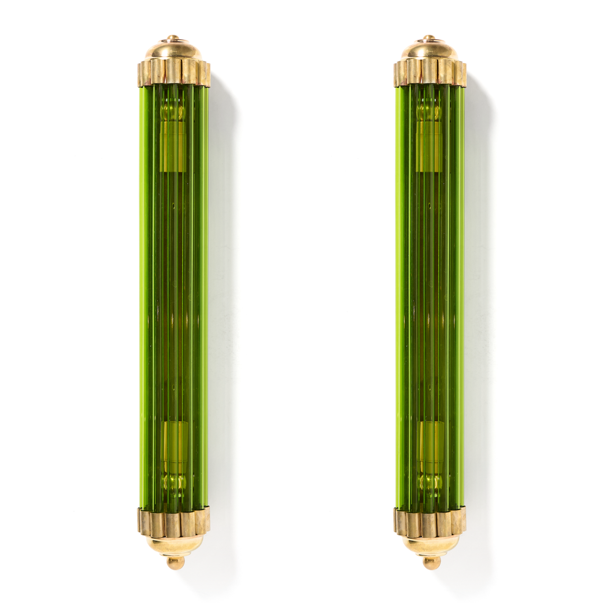 Beautiful pair of brass and green glass rods sconces found in Italy
