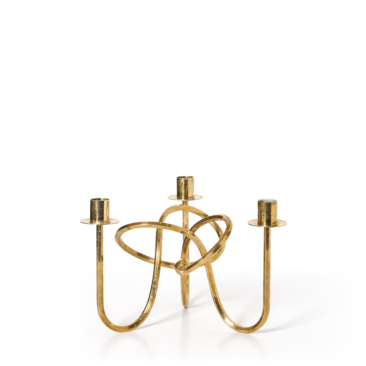 The friendship knot is a beautiful brass candle holder with amazing patina. Designed by Josef Frank in 1938 and made by Firma Svenskt Tenn, Stockholm, Sweden. Excellent condition.