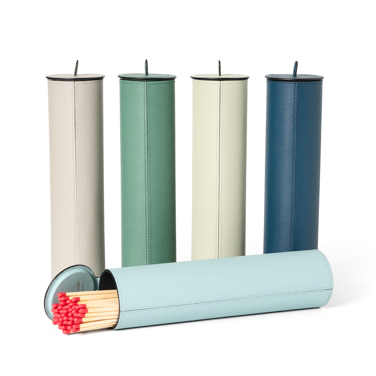Handcrafted in leather with strike pad at bottom. 60 matches included.