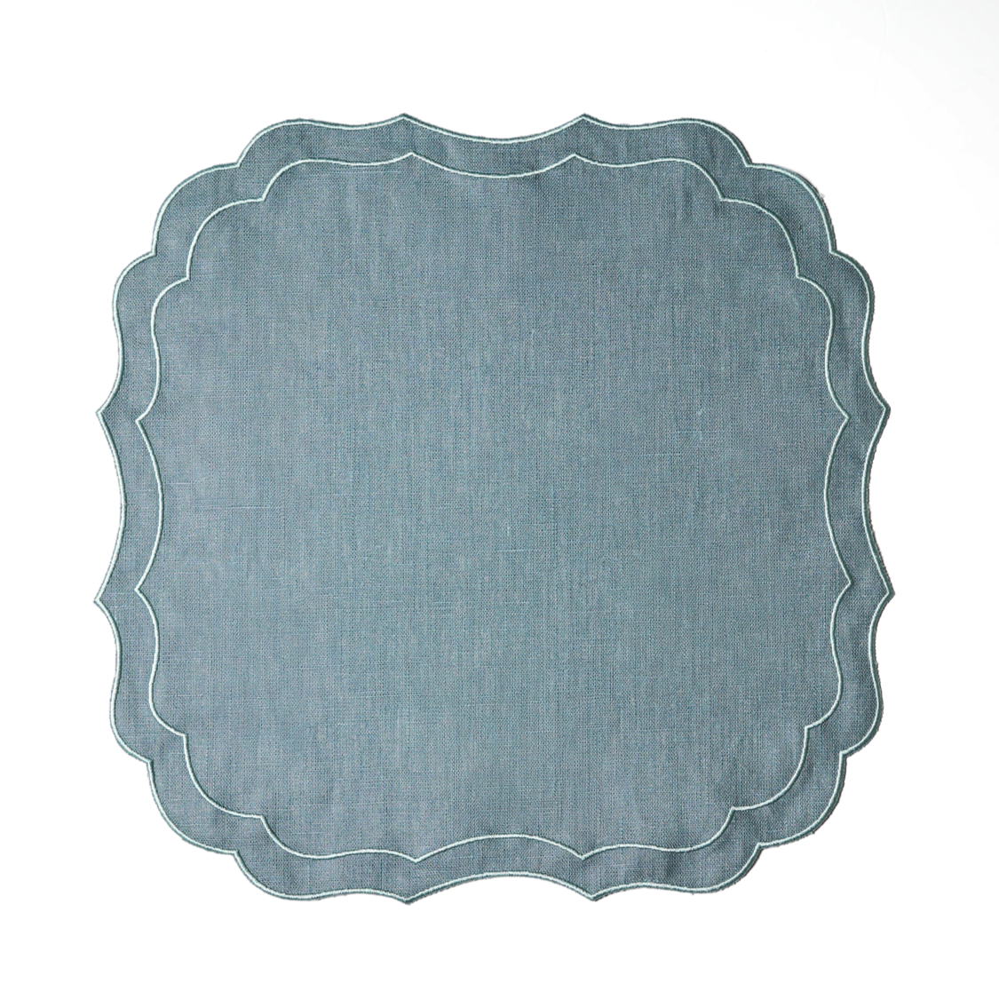 Italian embroidered oil-clothed linens for the table LGM placemats are in coated linen, hand cut and Made in Italy. The unique coating makes the placemats and coasters stain and wrinkle resistant, as well, care free: simply wipe up spills with a damp sponge.