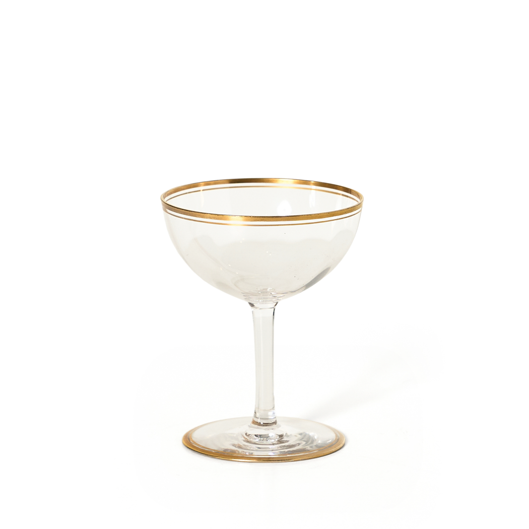 These beautiful gold Gilt champagne coupes make a luxe and elegant addition to your dining table arrangement.