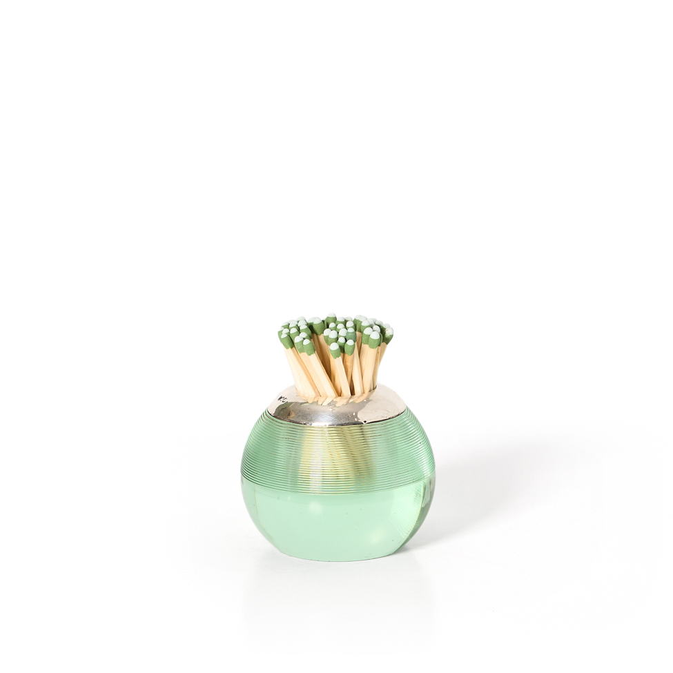 Edwardian, green and clear, crystal match striker with sterling silver rim in excellent condition.