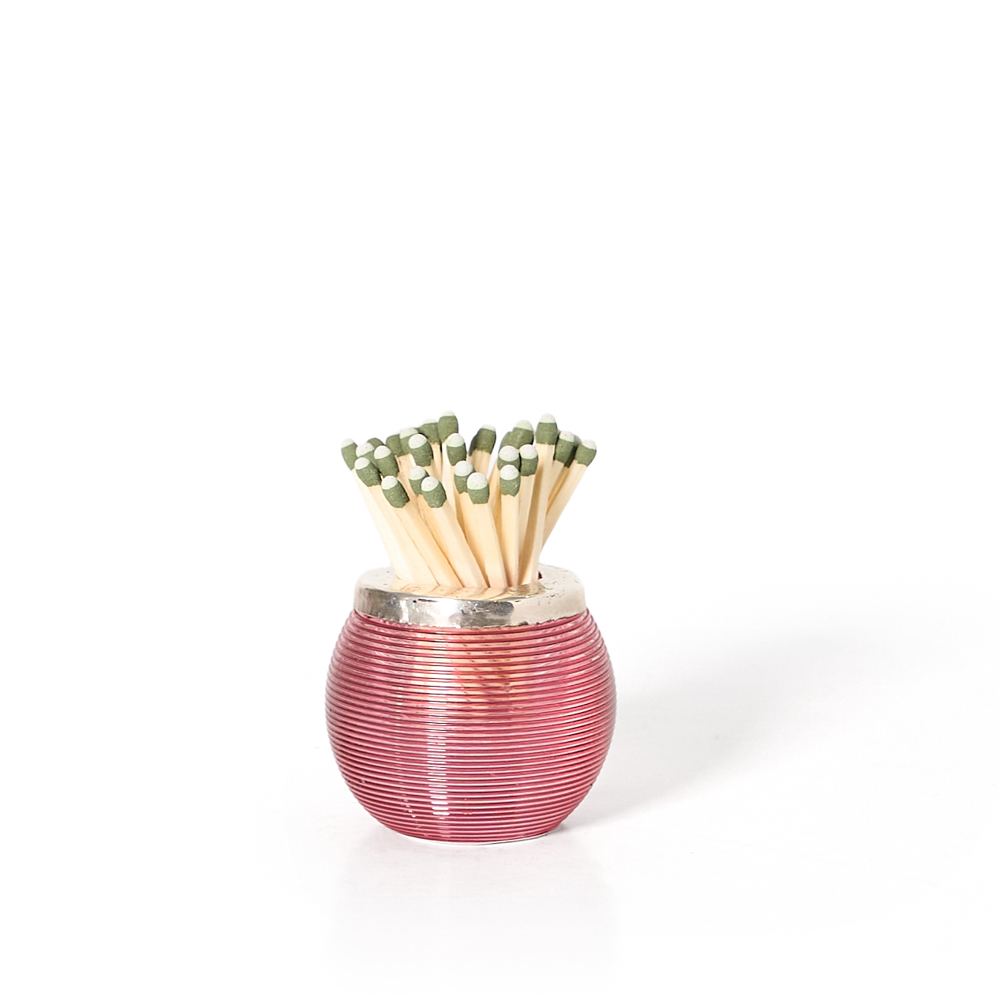 This wonderful pink match striker makes a lovely statement alone or in groupings on the mantle or tabletop.