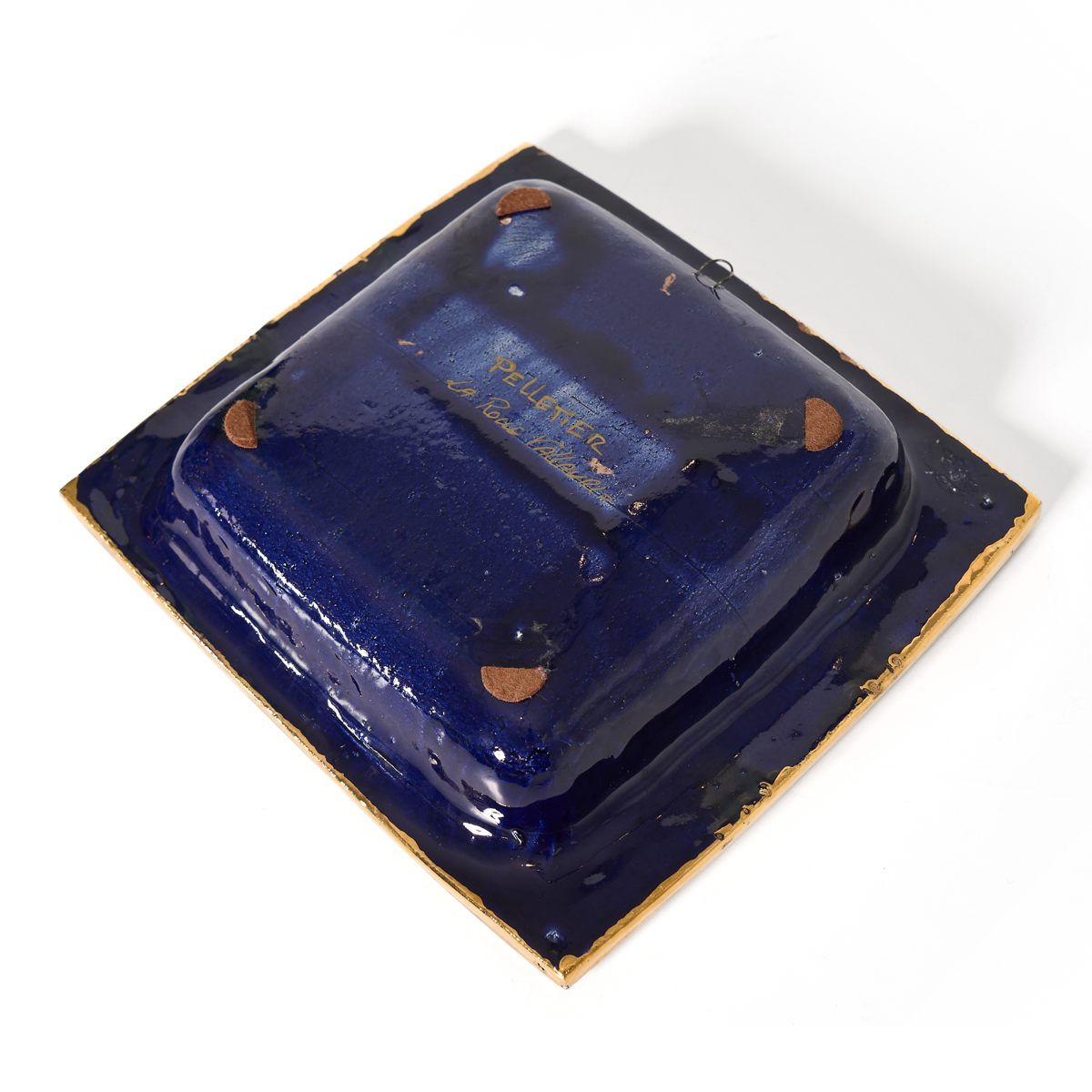 Gorgeous and highly collectible lusterware mid-century modern dish in warm and rosy hues by master ceramicist Georges Pelletier. Each mounted with a hanging wire for display.